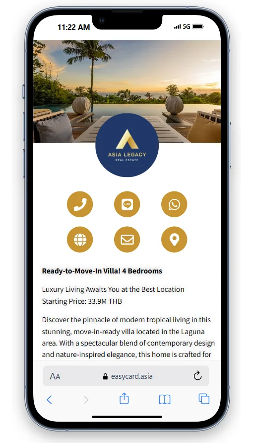 Share property details and your contact info instantly, making follow-ups easier and faster.